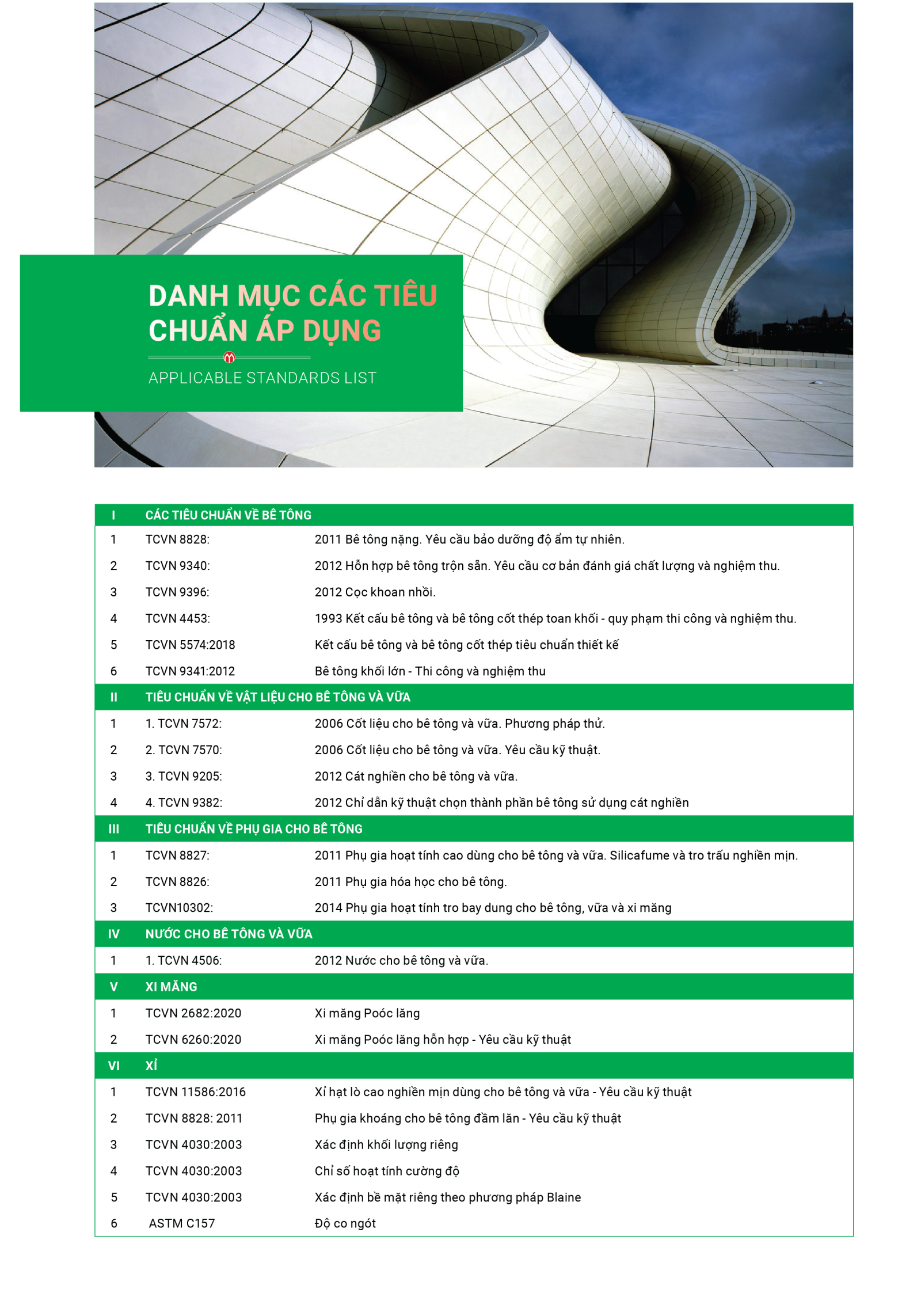 Sau đây là những tiêu chuẩn chất lượng đang được áp dụng tại Bê tông Mê Kông:
